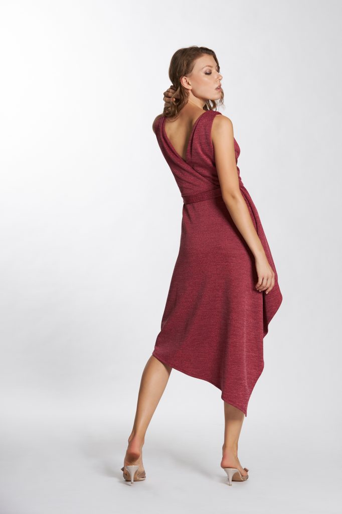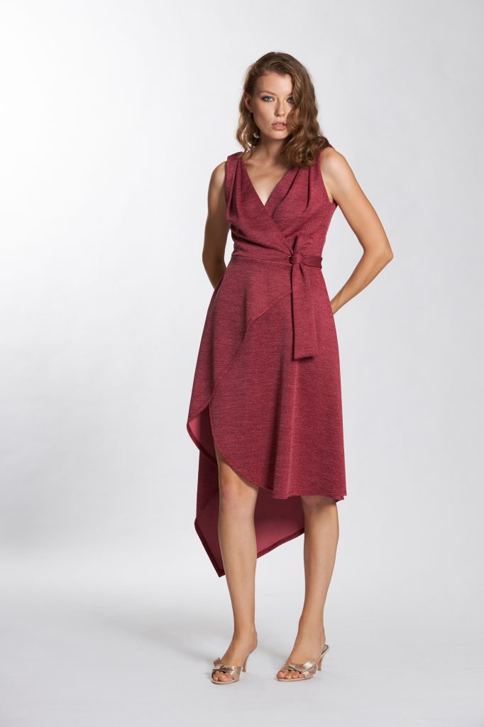 surplice neckline tie front midi dress